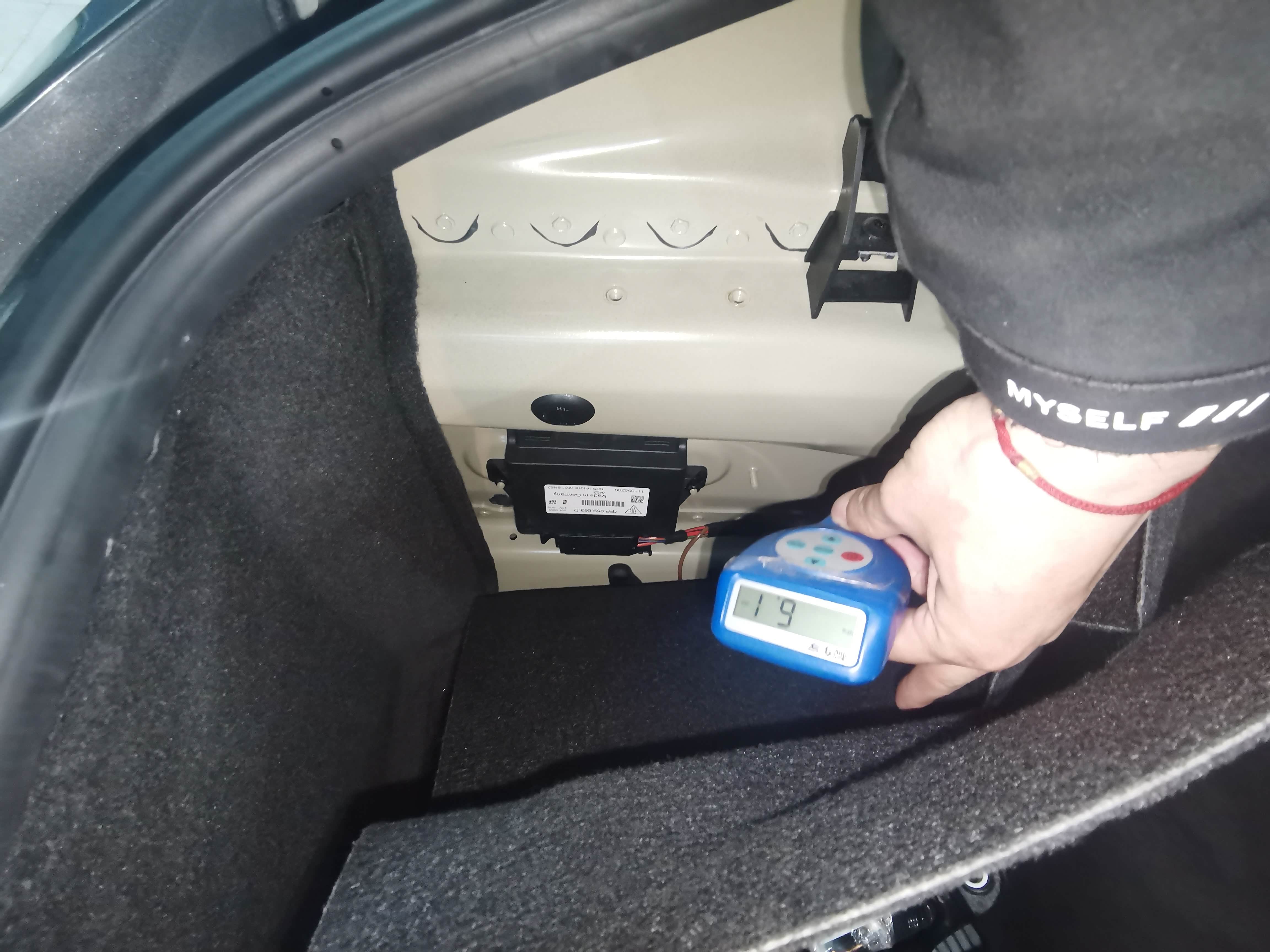 接着咱们再看看后备箱内测,后备箱内测没有发现钣金修复的痕迹。小东又仔细检查了后围板后后尾灯,均没有发现修复的痕迹,后部可以排除事故了。