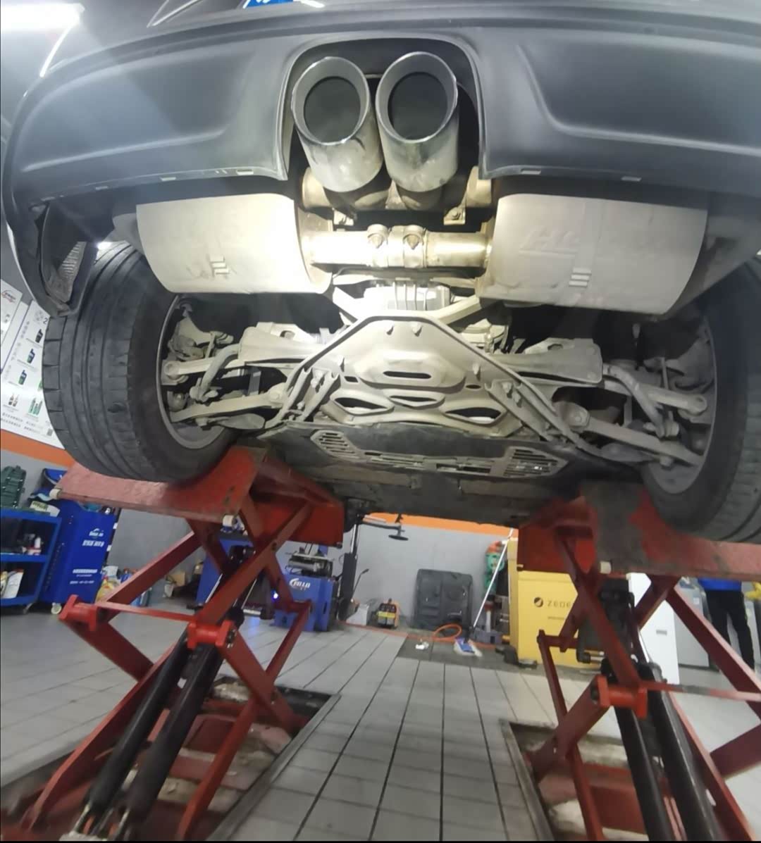 底盘也没有发现漏油的地方,发动机和变速箱结合处很干净。这是小姐姐走了过来,大致看了一眼,对底盘还是比较满意的。小东又检查了减震及拉杆球头均没有发现老化开裂的痕迹。