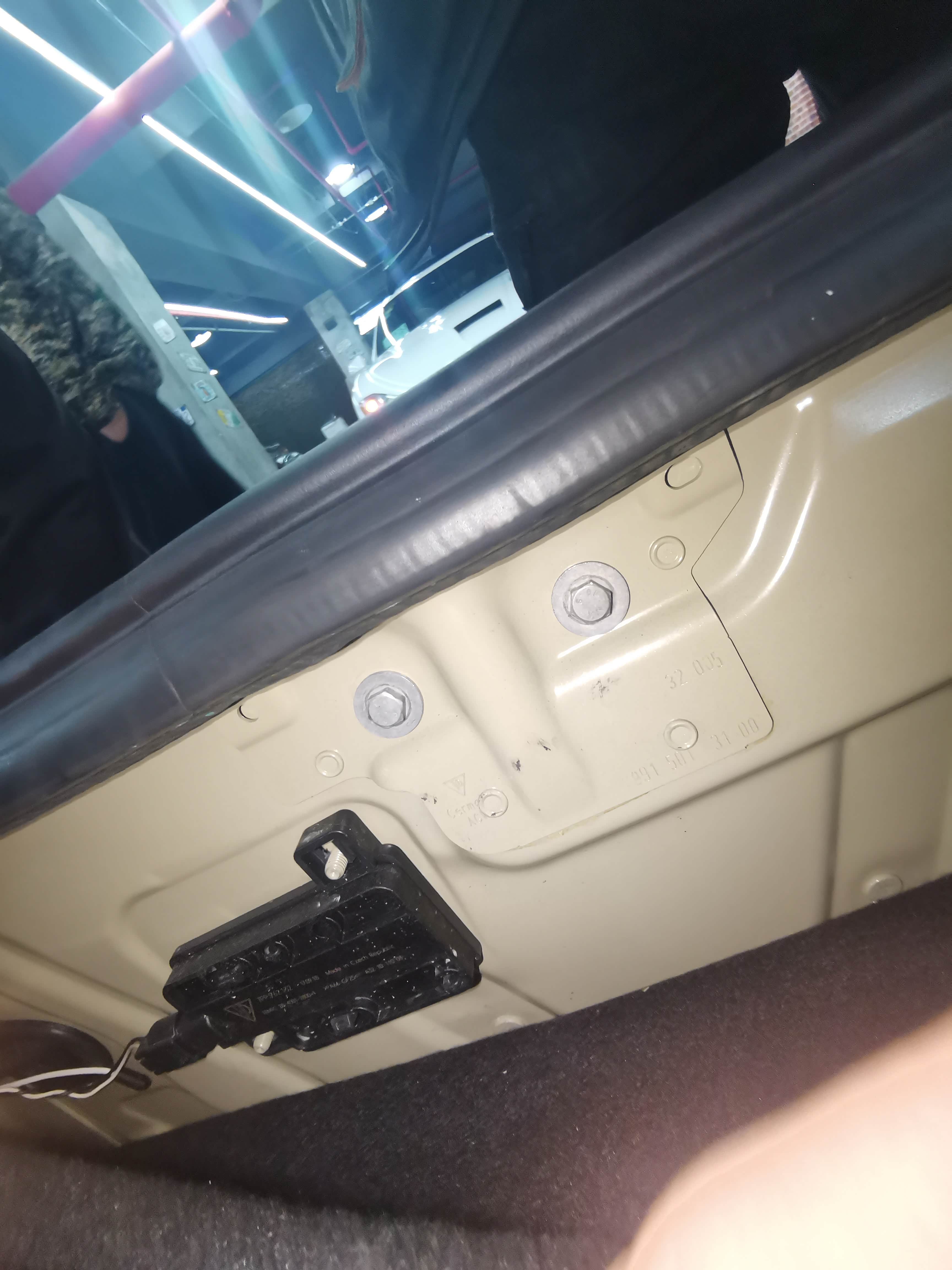 机盖的螺丝有位移的痕迹,原来的痕迹裸漏了出来,而且机盖螺丝也有拆卸的痕迹。这下更加证实了机盖是后换的。一般年款这么近的车机盖是不会随随便便拆的,除非有事故。接着咱们一起看看储物箱内侧。