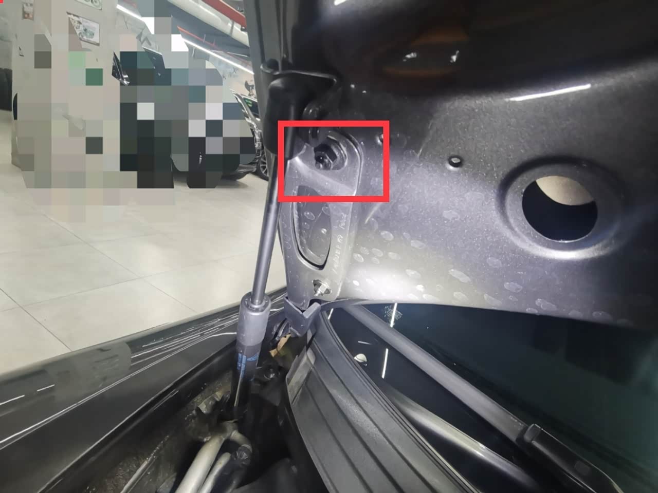 小东刚开始拆机盖锁上部饰板的时候,饰板有点不平整,已经有变形了。而且卡扣已经完全卡不到位了。小东猜测这块饰板应该不是原车的。于是小东便把饰板给拆了下来