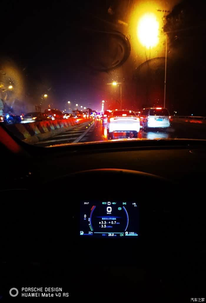 全程80%严重拥堵20%畅通,偶尔有急加速超车的情况,拥堵加中雨,雨天行车阻力大,对秦PULS的油耗也是比较大的考验。