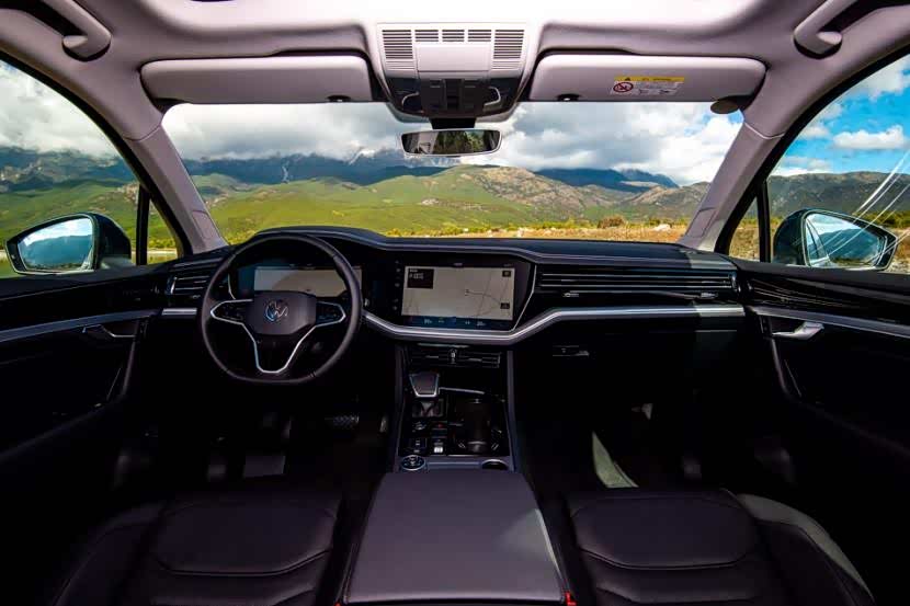 进入到途锐eHybrid的车内,数字化驾驶舱Innovision Cockpit不仅进一步加强了豪华的属性,更是将科技元素体现的淋淋尽致。12英寸全液晶仪表、15英寸中控液晶显示屏以及HUD抬头显示的组合形成了三屏联动,可显示的内容十分丰富,实用性也因此得到了极大的提升。此外,全车内饰采用了大量的皮质材料进行包裹,中控下方的饰板采用了银色的金属材料,在各方面都体现出作为旗舰级车型该有豪华调性。