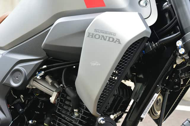 首选是车头部分增加了小的风挡,虽然并不会起到什么实际作用,但是增添了不少复古韵味,强化了CBF190TR的复古印象。