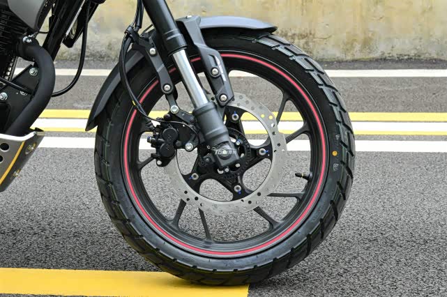 硬件配置方面,依然是倒立式前叉+中置后避震,前单碟刹盘+双活塞卡钳,后单碟刹盘+单活塞卡钳,仅前轮配备ABS防抱死系统。