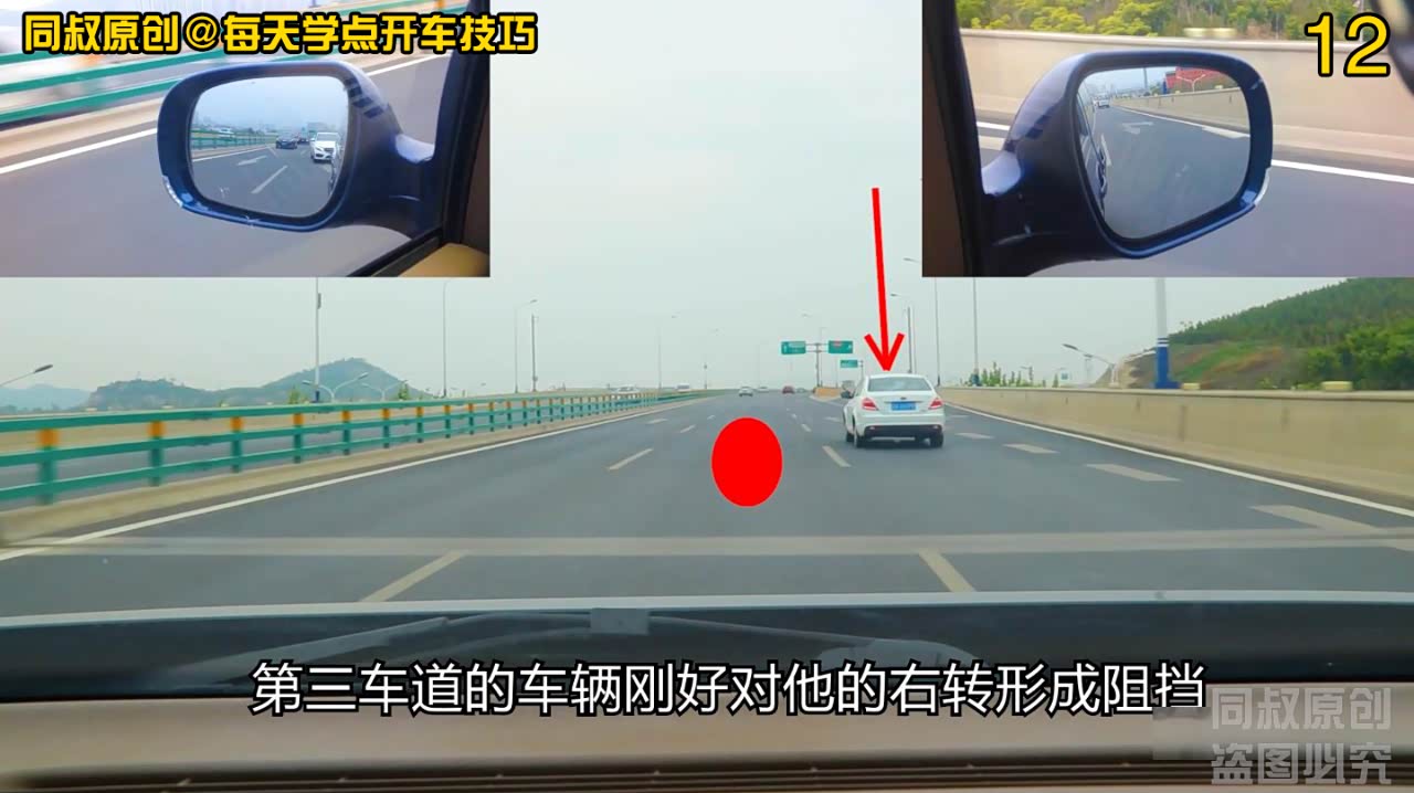 那白色轿车在发现即将到达出口的时候,为什么不采取提速变道的策略呢?事实上这个决策,就是一瞬间的判断所做出来的选择,没有多少时间来考虑。我估计是这样的:白色轿车发现即将到达出口,而当时还行驶在第一车道上,如果提速变道,可以抢在我车前变道到第二车道。但是,他还看到了第三车道行驶的另一辆车,他提速后很可能就与第三车道车辆形成并行状态,