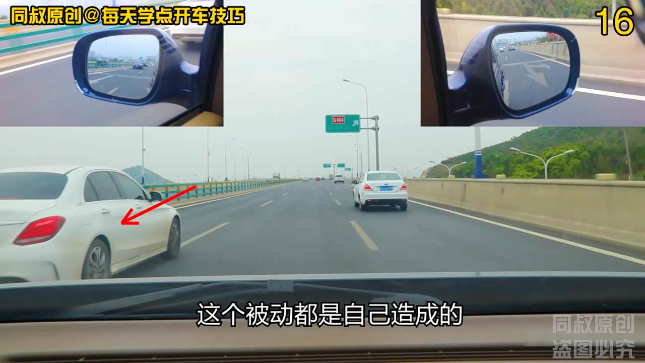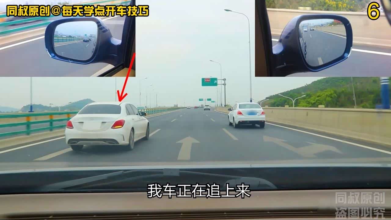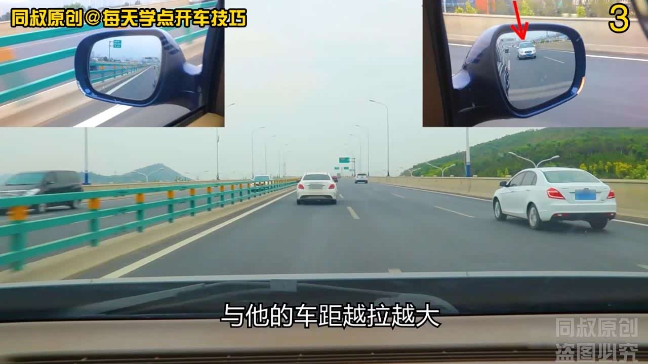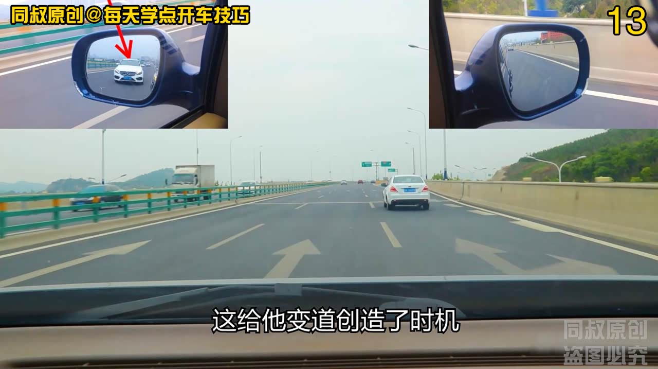 可以在左侧后视镜中看到他,在我超车后,他立即向右变道的动作很干脆,这说明,他对后方车辆车距和速度有了足够的观察和判断。
