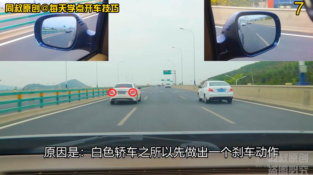 他幸运的是,我超过他以后,在我后方的车辆速度较慢,车距也较远,这给他变道创造了时机。如果在我车后面有多辆车快速紧跟,那白色轿车既不敢强行变道,也不敢停下来等待变道时机,如果停下来,那被追尾的风险就很大了。